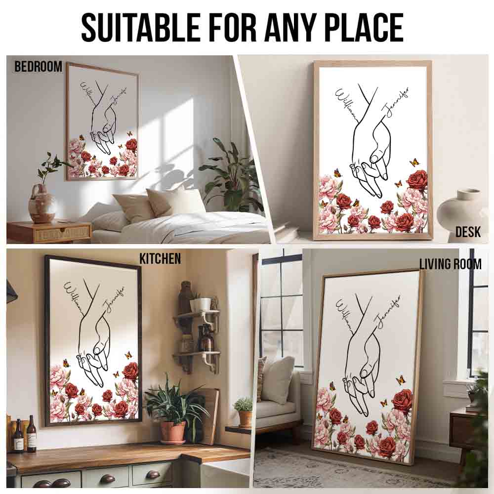 I Love You Couple Hand Print Birth Flower - Personalized Poster/Canvas Prints - Gift For Her/Him, Wife/Husband, Girlfriend/Boyfriend on Anniversary, Valentine's Day