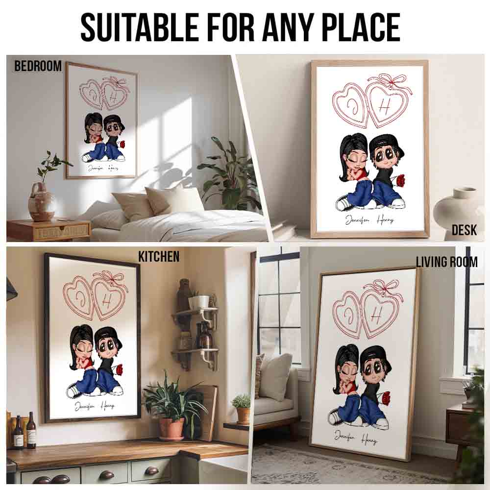 Y2K Couple Initial Heart Locket - Personalized Poster/Canvas Prints - Gift For Her/Him, Wife/Husband, Girlfriend/Boyfriend on Anniversary, Valentine's Day