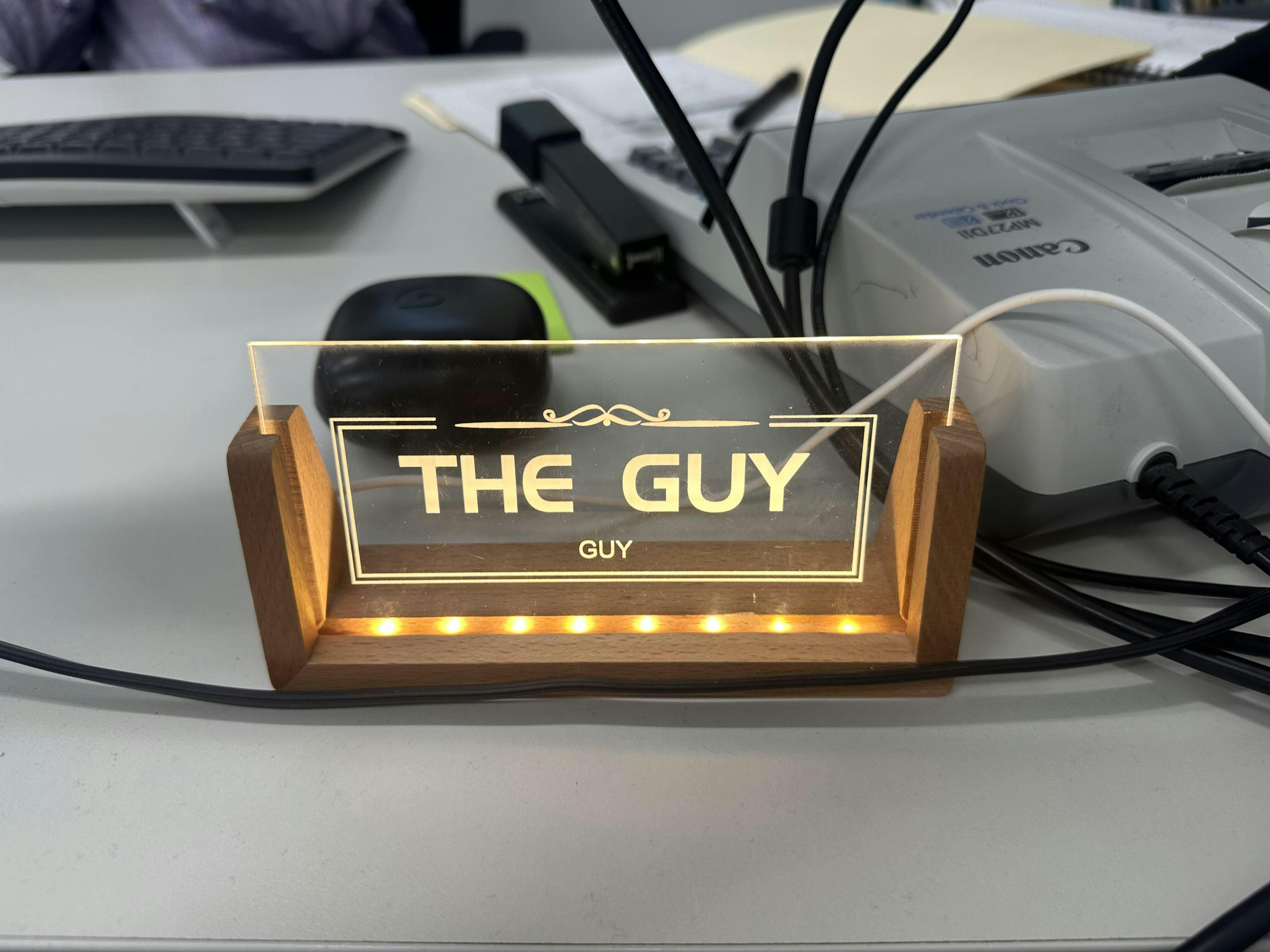I received this as a gift initially. I received it while on a trip, and it cracked while travelling back. So I found this site on etsy. I ordered and received my name plate quickly. Service was great and it has made my desk look even better. If I had one recommendation, I would make it light up in different colors. The first one I got (possibly from another vendor) lit up in different colors. Other than that, I love it.