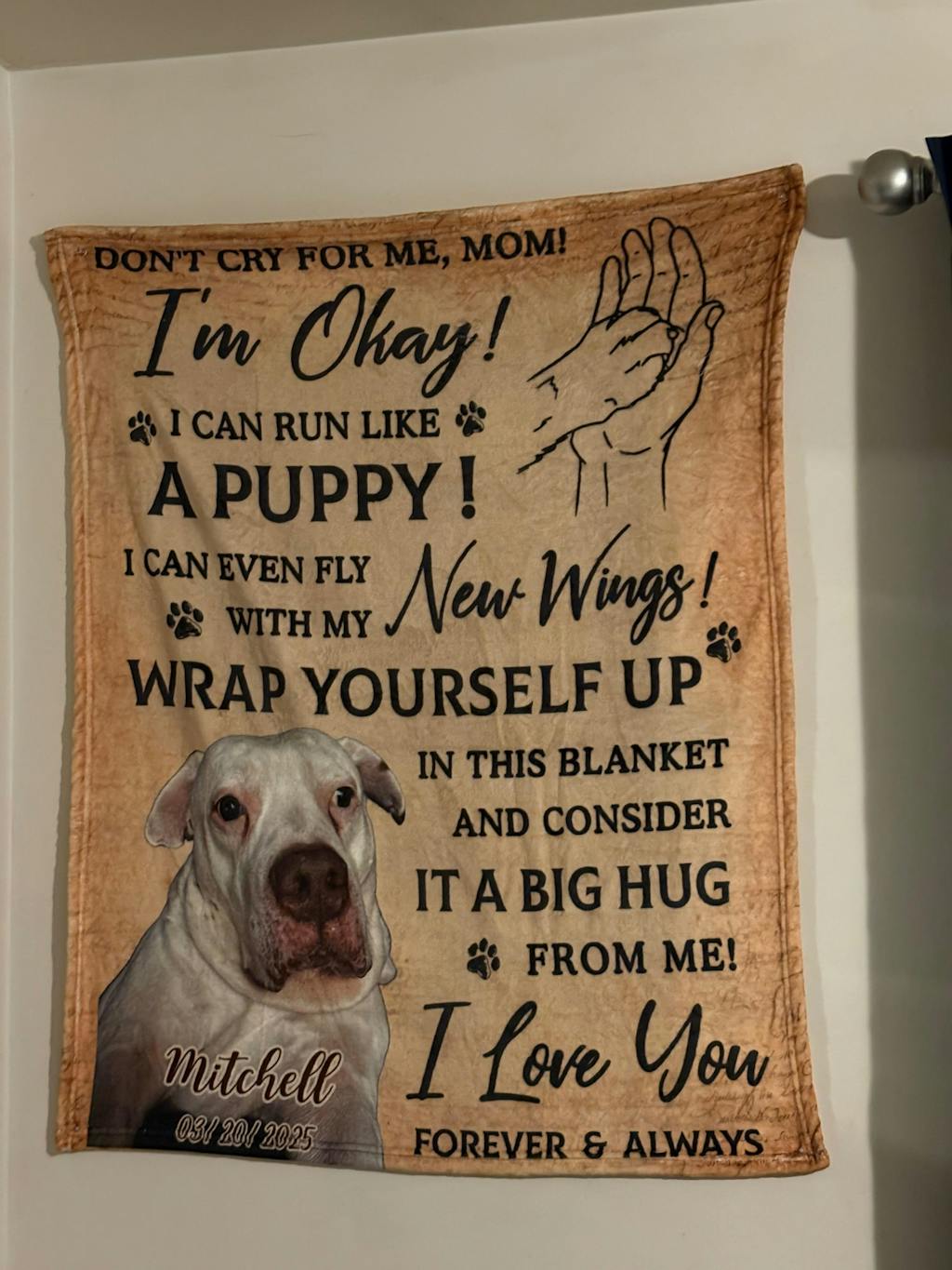 I absolutely love this blanket it brought me to tears as i opened it. I touch and kiss it everyday!