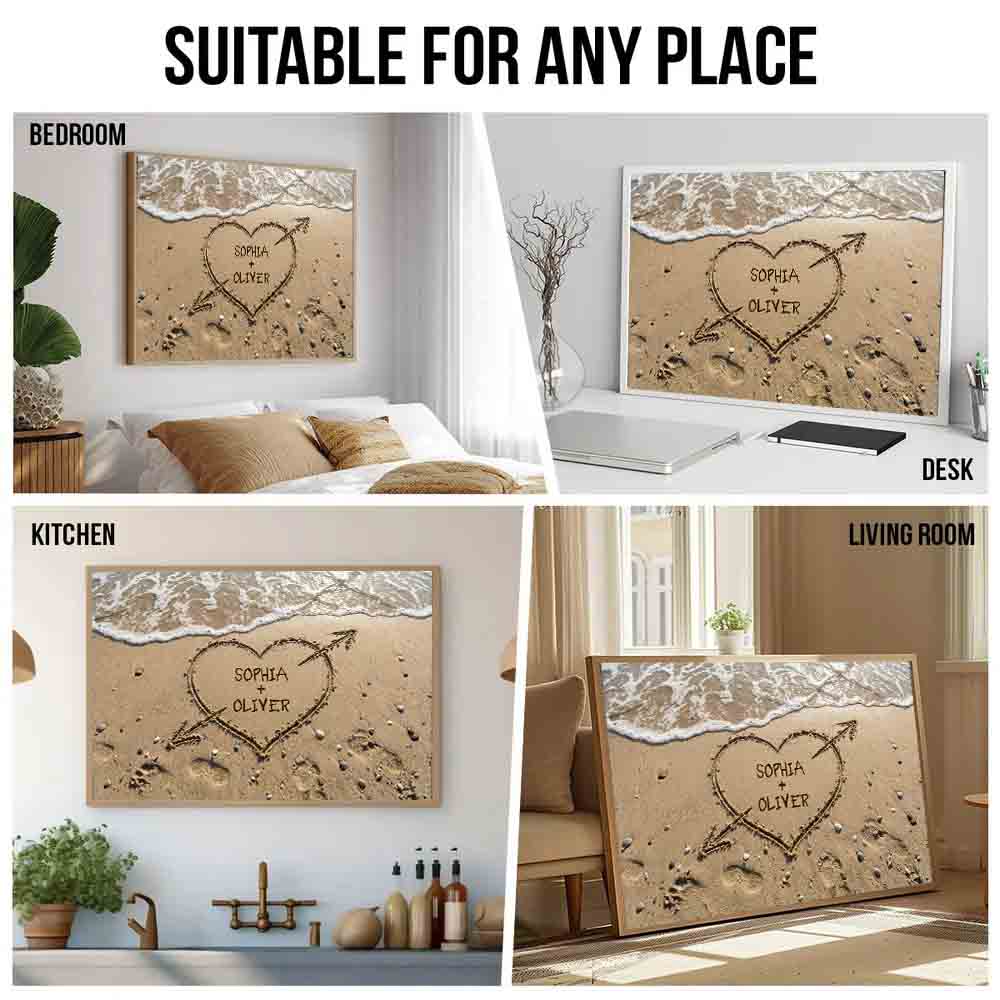 Couple Names Heart in Sand - Personalized Poster/Canvas Prints - Gift For Her/Him, Husband/Wife, Couples on Anniversary, Valentine's Day