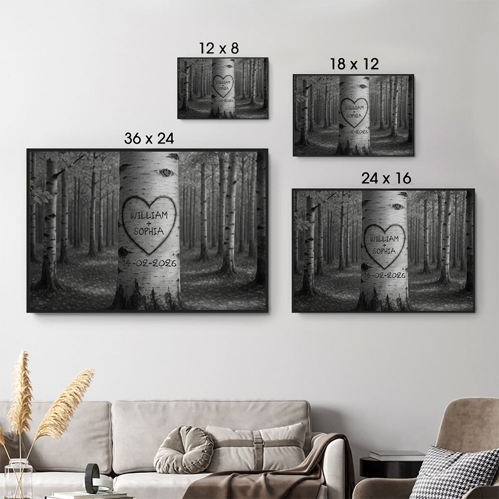 Couple Names Tree Carving Heart - Personalized Poster/Canvas Prints - Gift For Her/Him, Husband/Wife, Couples on Anniversary, Valentine's Day