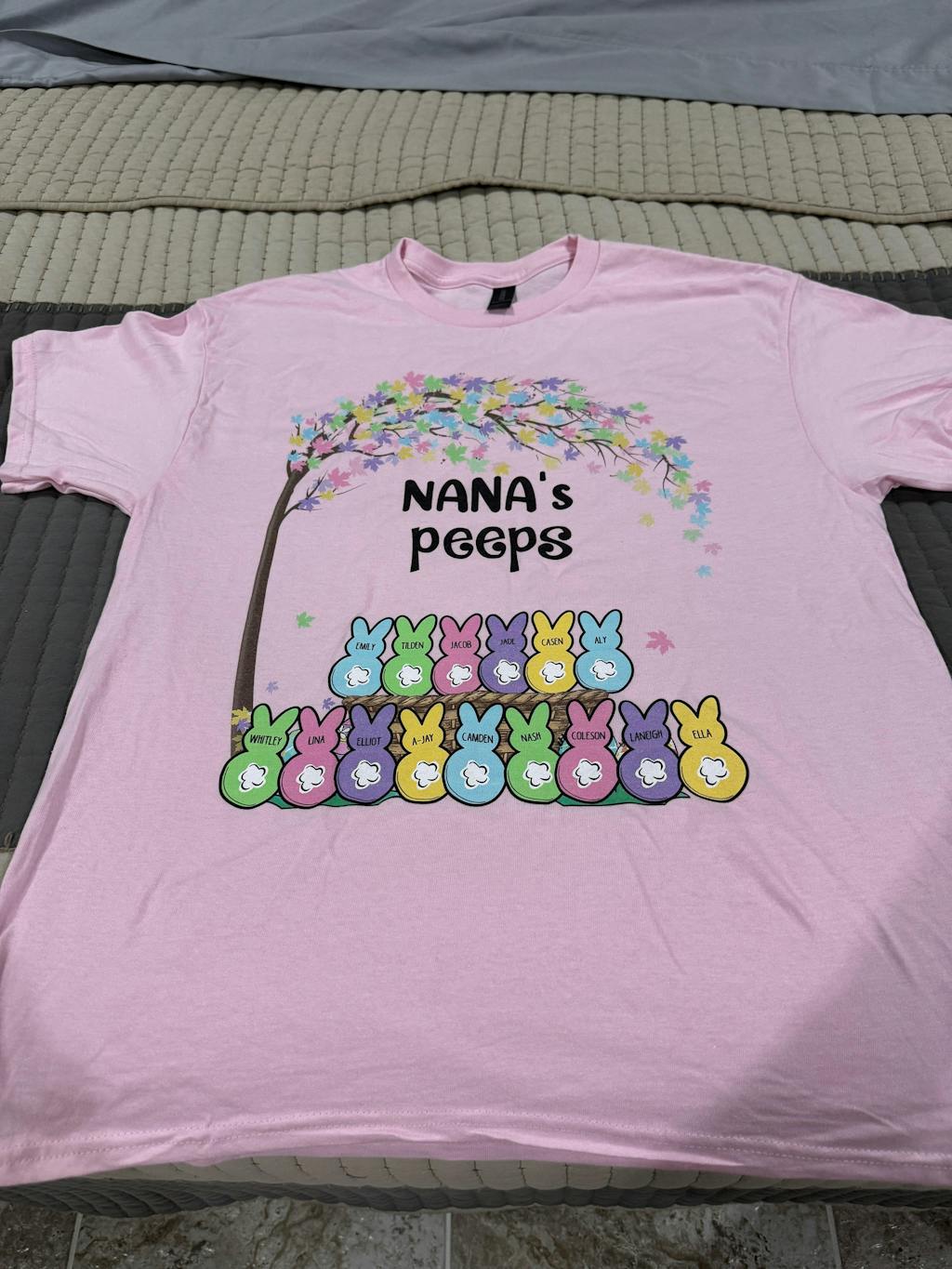My shirt came in within a week after I ordered it and it is adorable! All 15 grandchildren are on it and I loved that. The shirt is well-made and the material is good and I can’t wait to wear it on Easter.