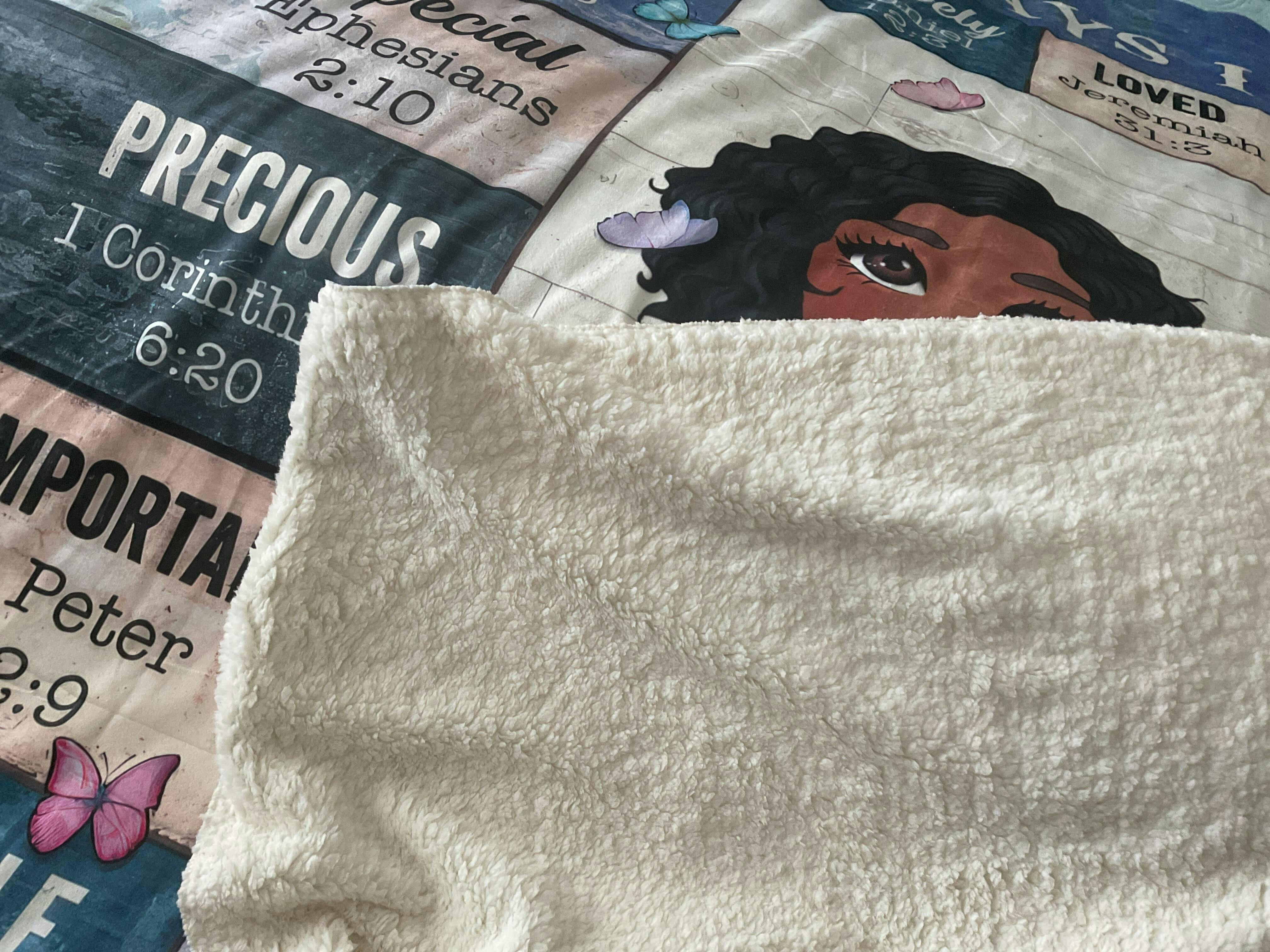 - Sherpa Blanket: Snuggle up with the cozy sherpa blanket featuring your art or photography vibrantly reproduced. Plush & warm, it’s the ultimate in-home accessory piece for the bedroom or the couch. This blanket combines soft polyester on one side and fluffy wool-like sherpa on the other.