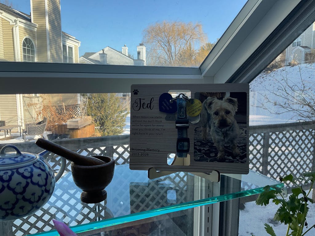I love this item and have it displayed in my kitchen where I can see it everyday. It truly honors the memory of my buddy. The picture quality is great and I smile every time I see him. Additionally, it has given me a place to keep Ted’s collar in honor of his life with me. Thank you.
