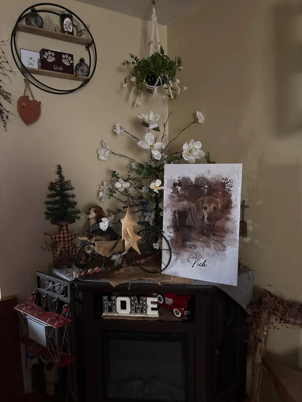 My best friend. My baby. My forever fur baby. He was with our family for 15 wonderful years. He had a wonderful life help raise our two sons and teaching our other dog Maggie the ropes. Hooting and howling at horses, wild animals and those "evil postal workers. Etc." Lol. He sat with me while I had a bad day. Not well. Recovering from surgery. Or just wanting to watch TV and have a snack with mommie. He was my everything. The picture was the last Christmas he was with us he had dementia, severe arthritis, and there was something going on with his eyes and his insides. I saw this ad come across my feed and I kept seeing it and I knew I had to do it for him and for my piece of mind. I miss him all the time. Hearing him walk in the house. Thank you for this beautiful memory. Puts my heart at ease and calm. 😢❤️🐶