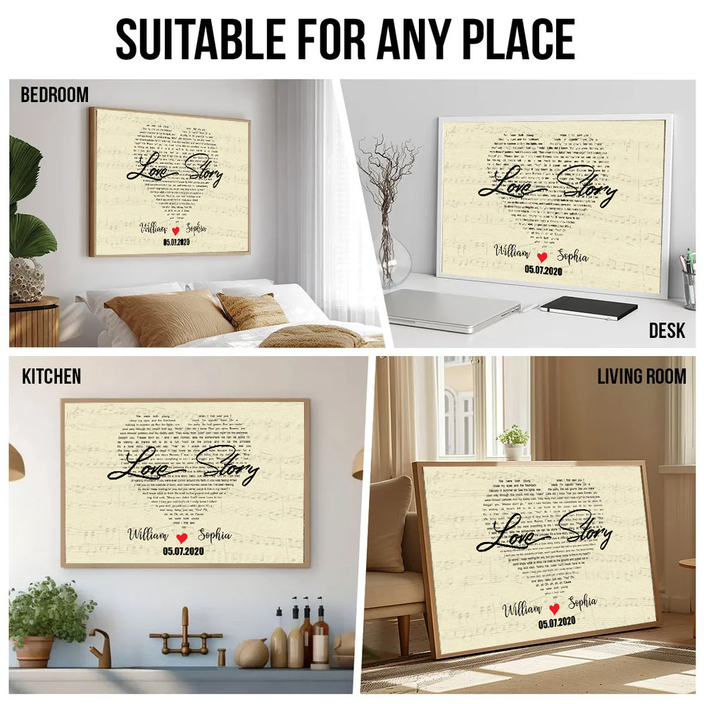 Custom Heart Shaped Song Lyrics - Personalized Poster/Canvas Print - Gift For Her/Him, Husband/Wife, Couples on Anniversary, Valentine's Day