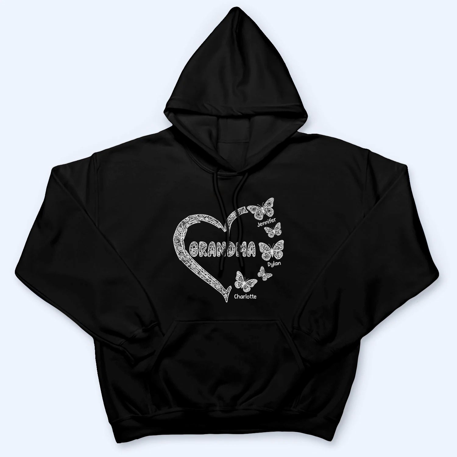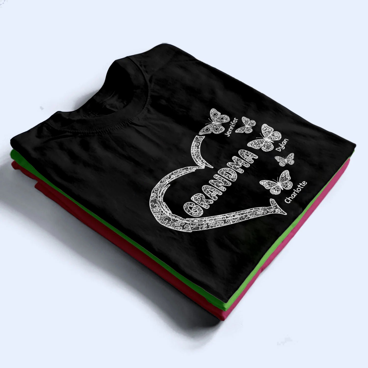Grandma Lace Pattern Butterflies Heart - Personalized Custom T Shirt - Gift For Mom, Grandma, Mama, Nana