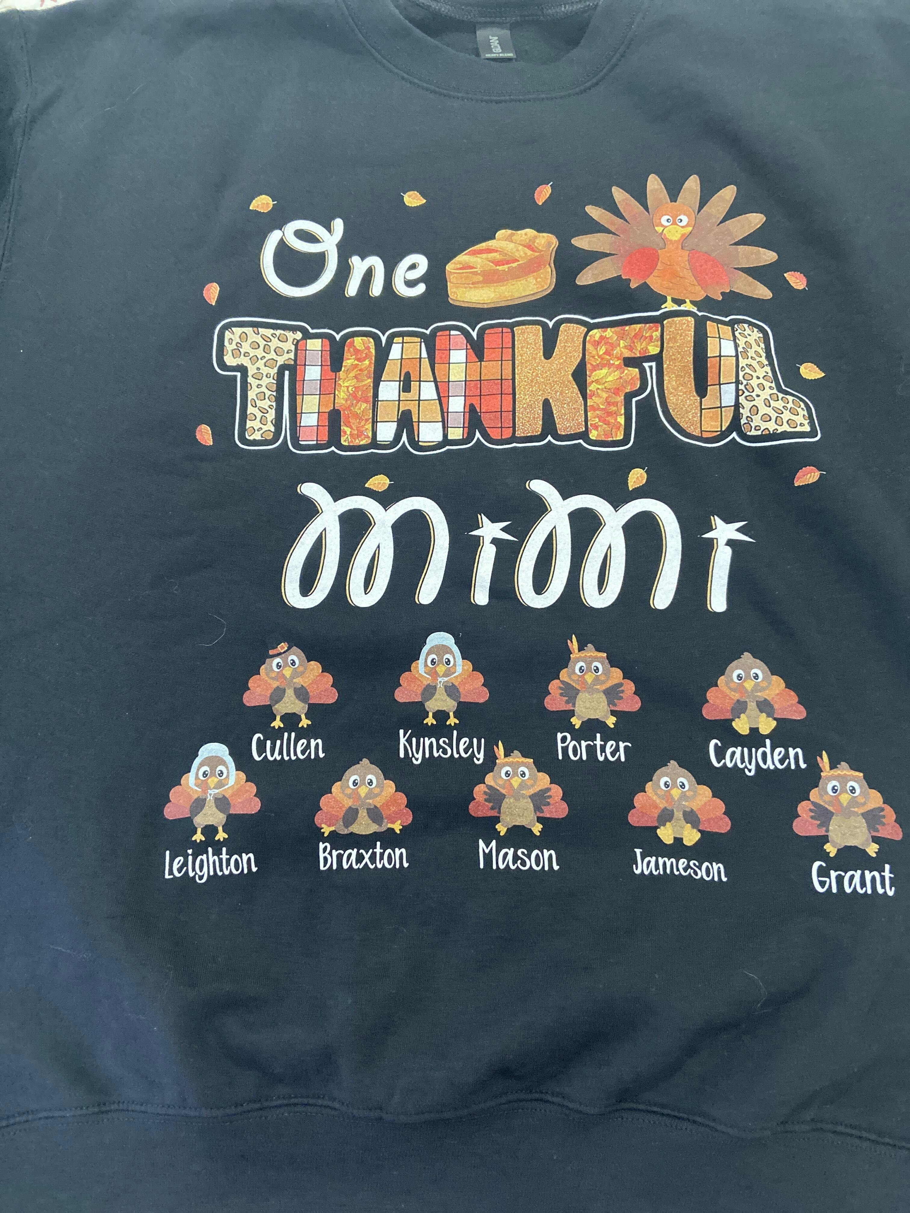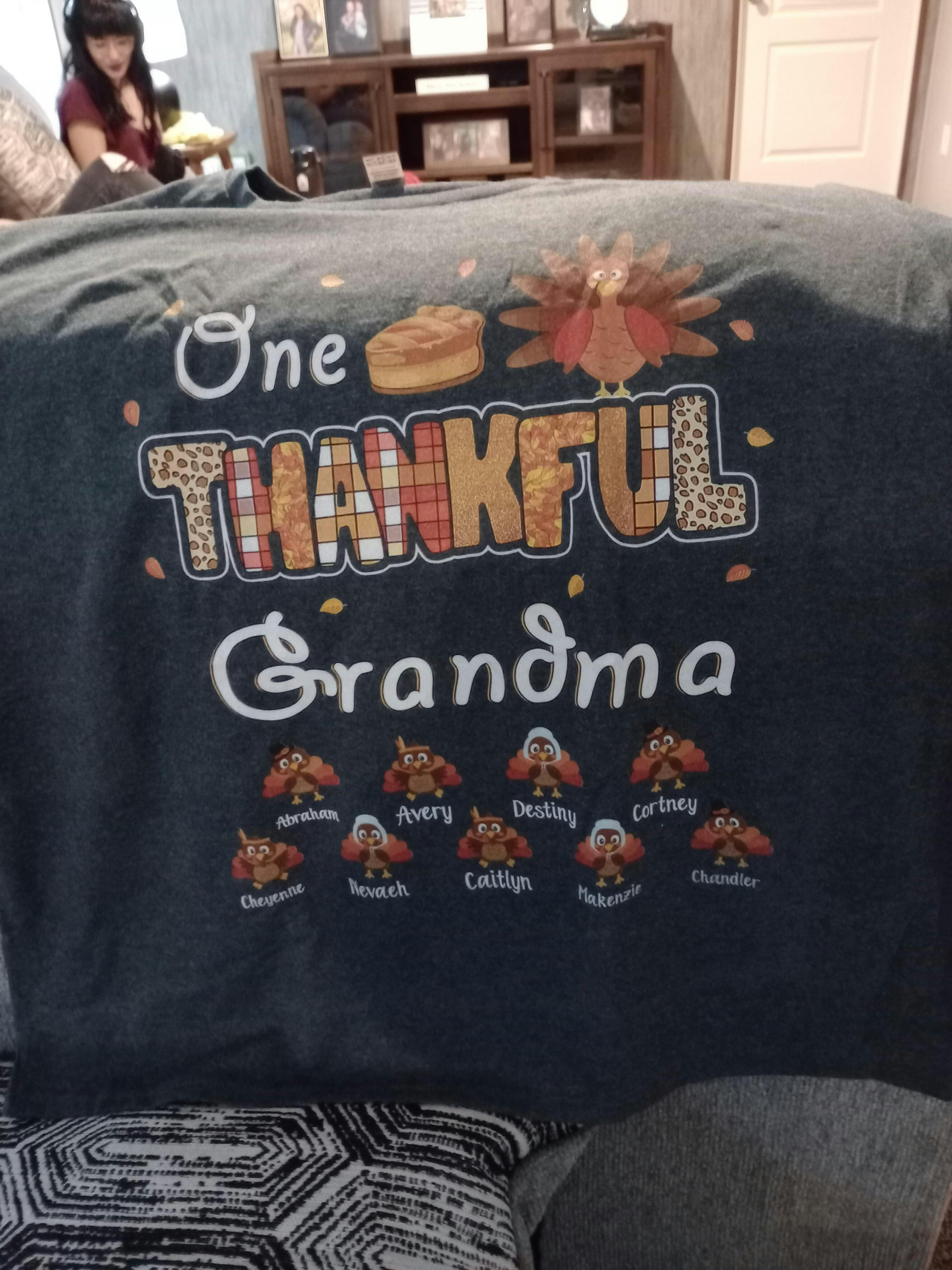 I am In love with my shirt. Especially because you used my title Gammie, I was not sure it would not just say Grandma until it arrived. Do beautiful and personal with my little turkey’s names 😀