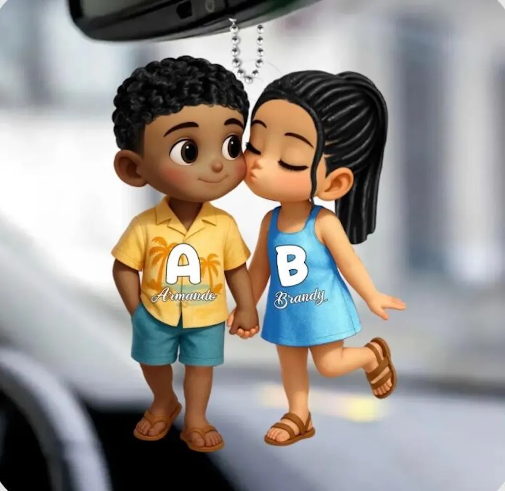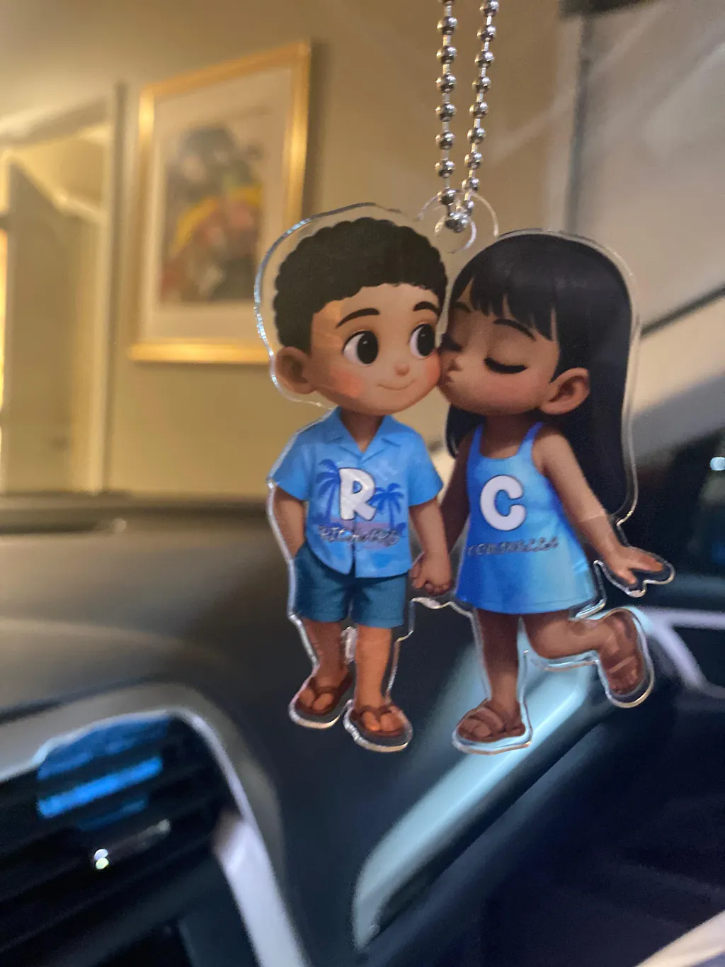 Cute Cartoon Couple Walking - Personalized Acrylic Car Hanger - Gift For Couple, Anniversary, Valentine, Engagement