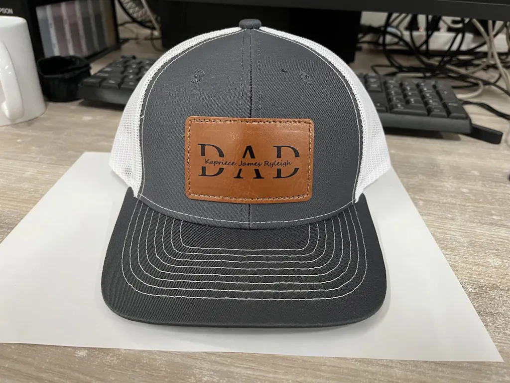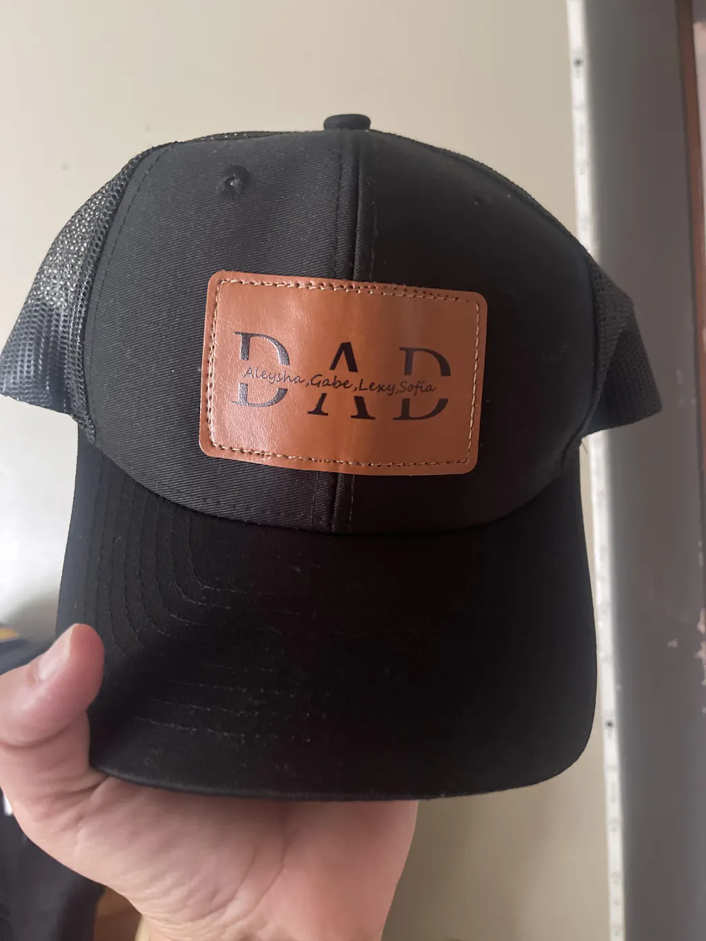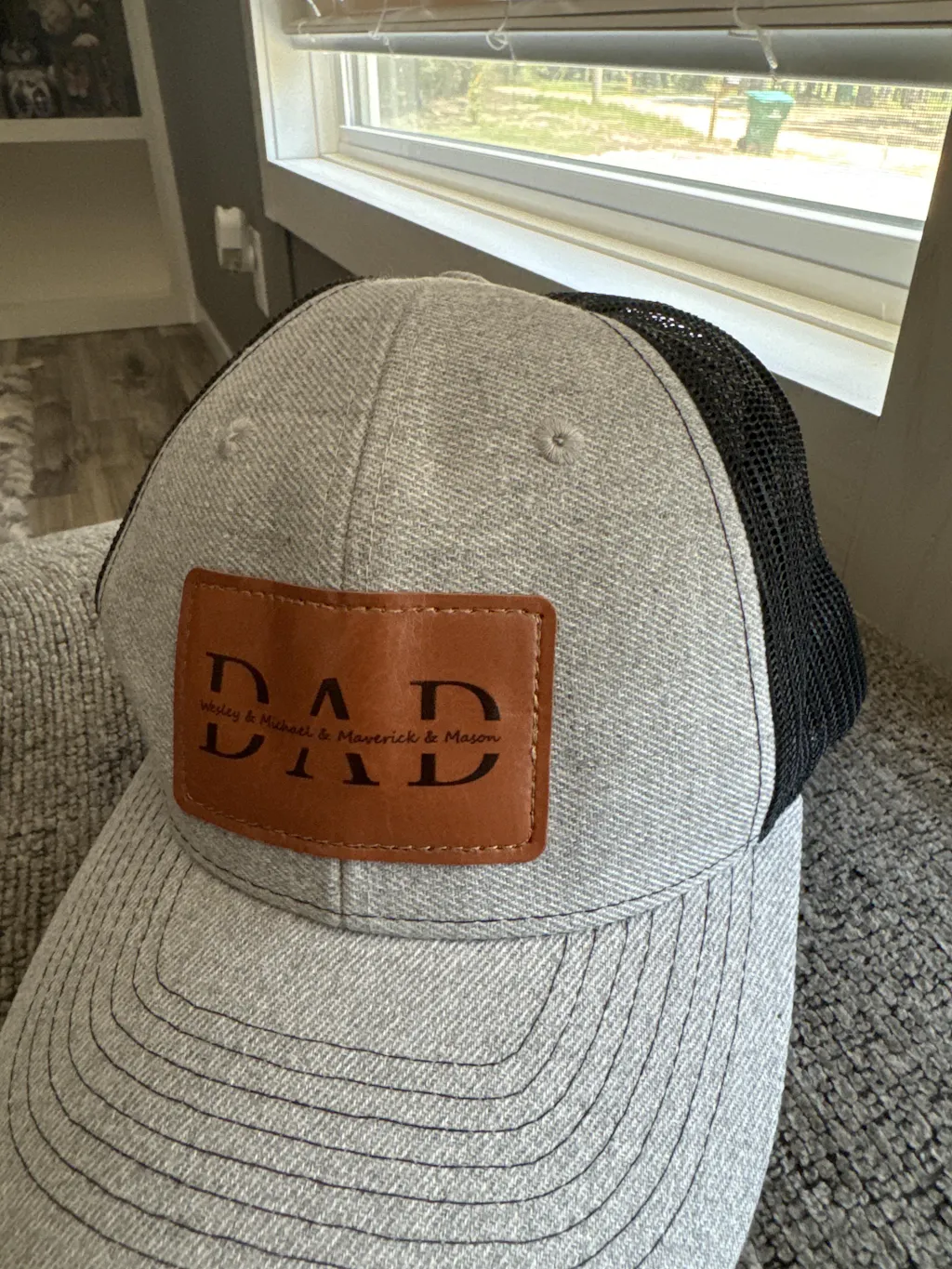 Custom Kids Name Dad Hat for Papas - Personalized Leather Patch Hat, Dad and Kids Trucker Hat - Father's Day Gift for Daddy, Dada, Grandpa
