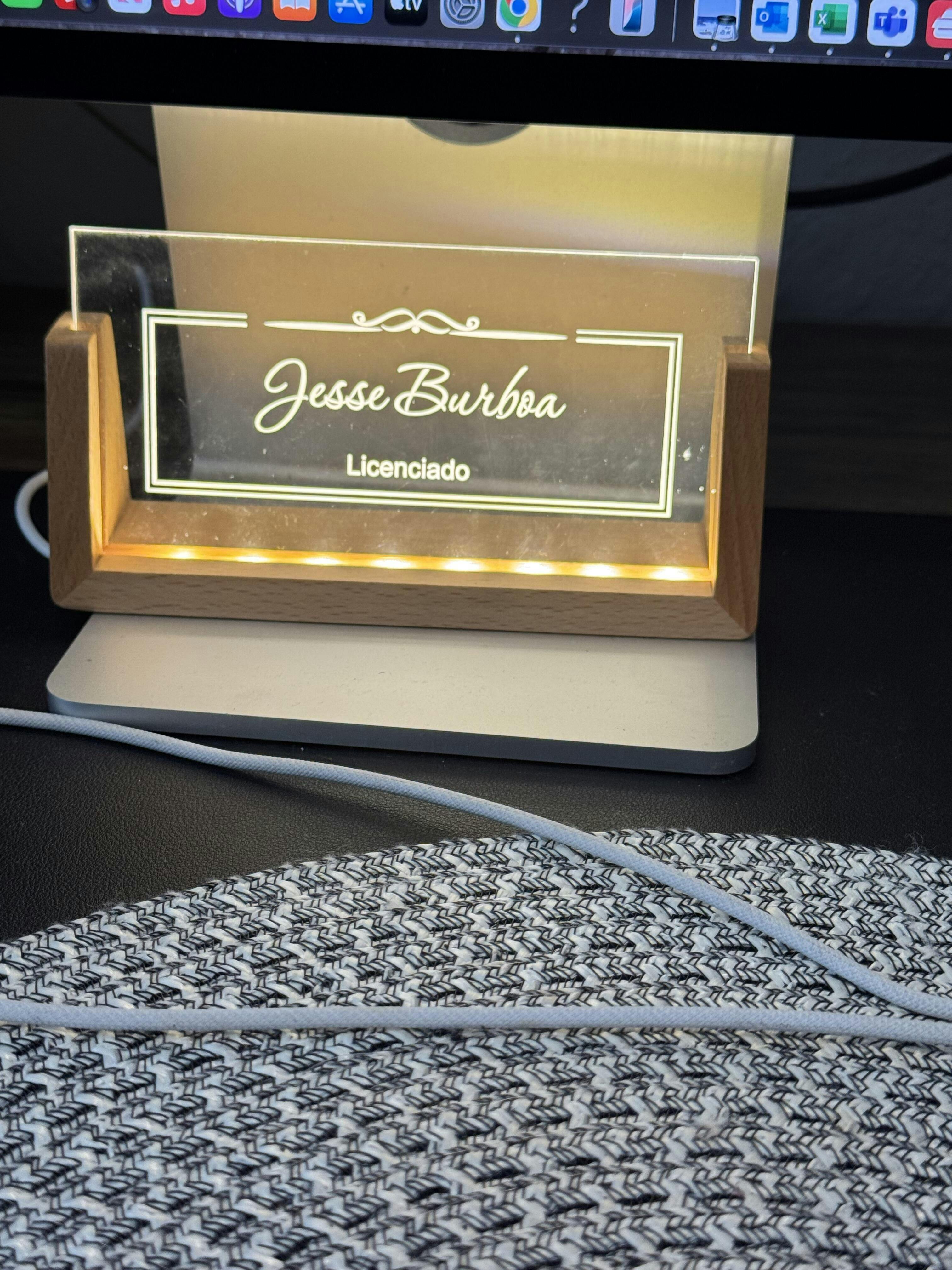 I received this as a gift initially. I received it while on a trip, and it cracked while travelling back. So I found this site on etsy. I ordered and received my name plate quickly. Service was great and it has made my desk look even better. If I had one recommendation, I would make it light up in different colors. The first one I got (possibly from another vendor) lit up in different colors. Other than that, I love it.